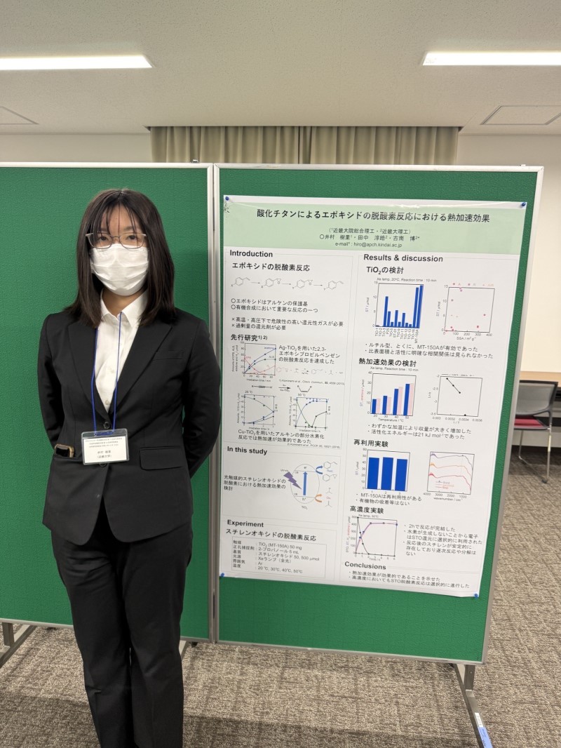 石油学会関西支部・日本エネルギー学会関西支部合同研究発表会にて、吉田君(M2)、神崎君(M2)、谷本君(M2)が研究成果を発表しました。吉田君が優秀研究賞、神崎君が優秀ポスター賞を受賞しました(12/13)。